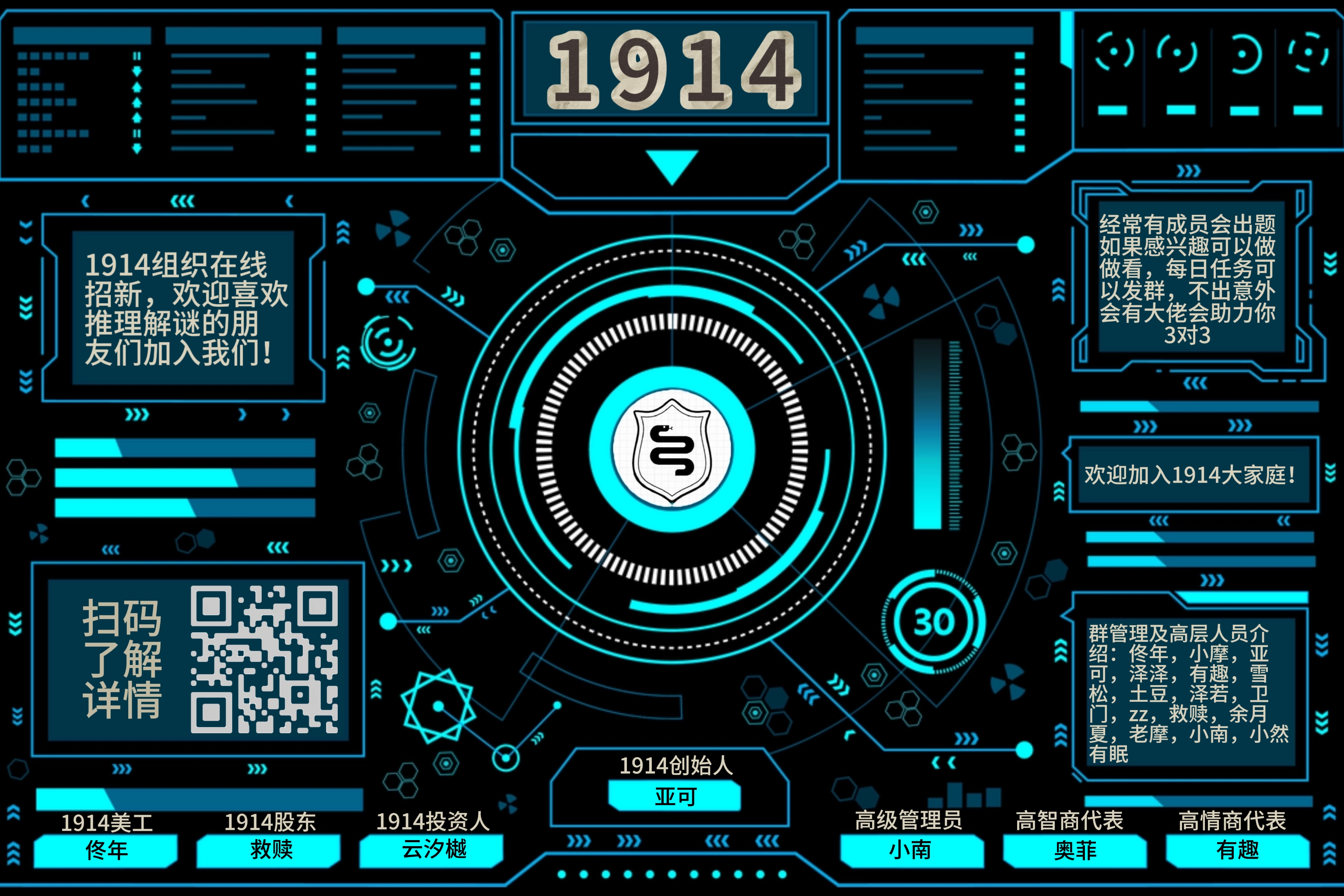 1914侦探社属于1914组织,1914组织系民间组织,致力于推理解谜破案,欢迎喜欢推理解谜破案的朋友们!